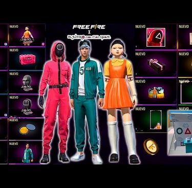 La colaboración con Squid Game llegó justo para el 8.º Aniversario de Free Fire y marcó un antes y después en los eventos dentro del juego 🎉🎮.